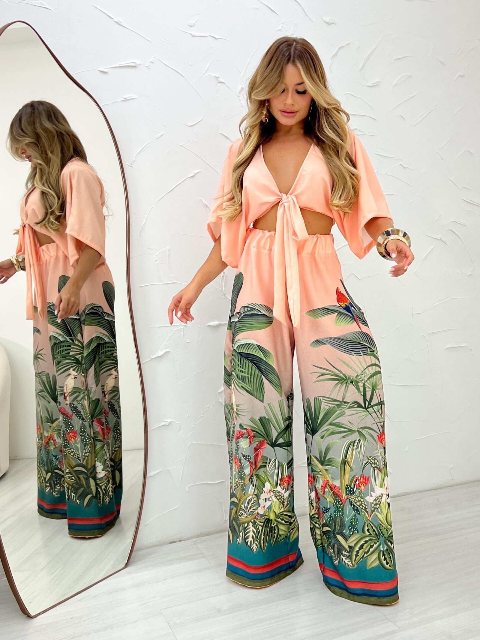 Blusa de amarrar + Calça Pontalona c/ elástico