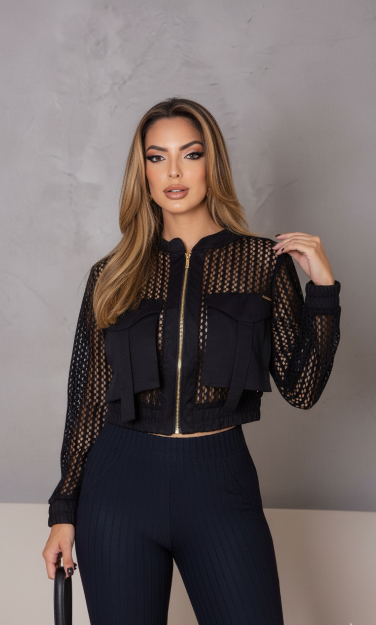 Nossa jaqueta em renda e tricoline traz leveza, sofisticação e um toque moderno para o seu look.